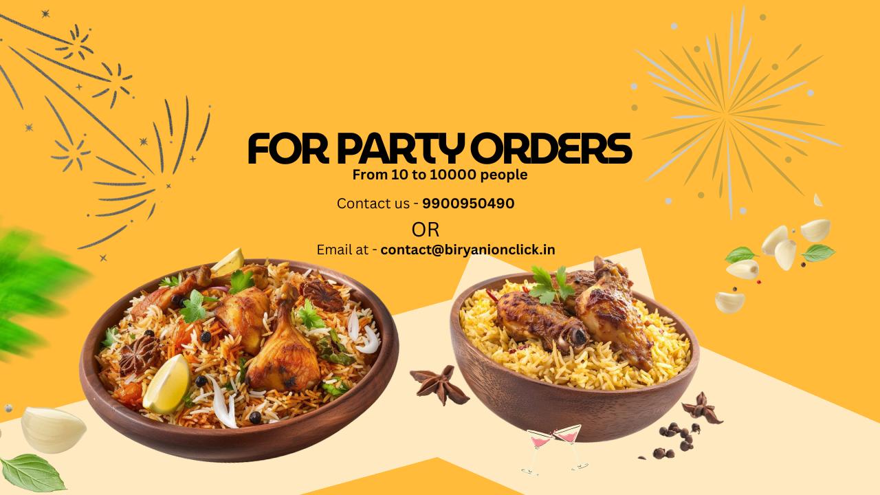 BiryaniOnClick provides authentic chicken and mutton biryani delivery in Bangalore with fast service and rich traditional flavours. Order biryani online for lunch, dinner or party orders across Kammanahalli, Kalyan Nagar and nearby areas. Searching for the best biryani near me? BiryaniOnClick is your local favourite.
