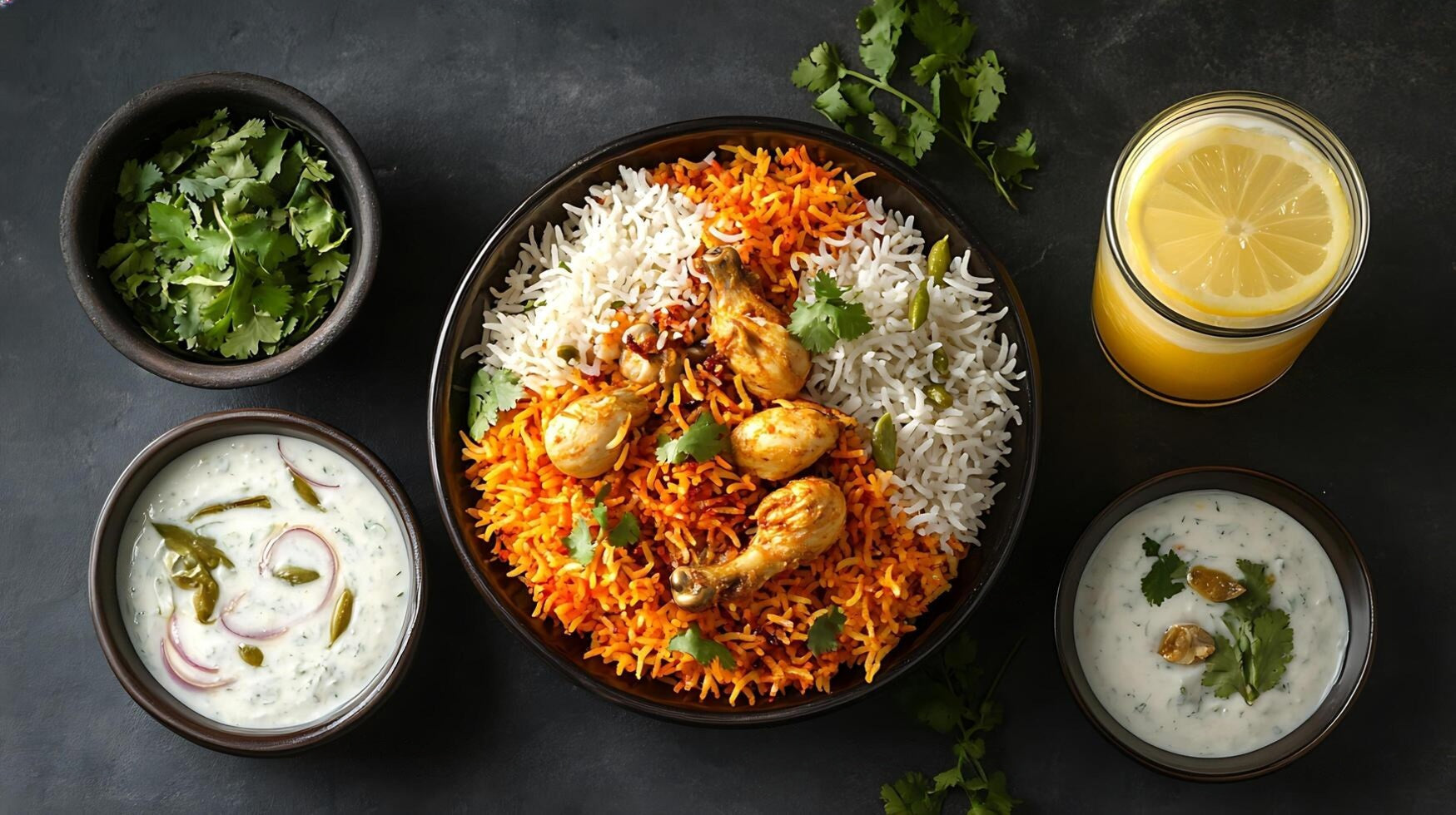 Fragrant biryani cooked with juicy chicken and signature spices.