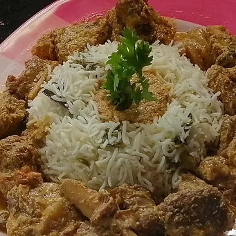 A rich, mildly spiced mutton curry served with fragrant ghee rice.